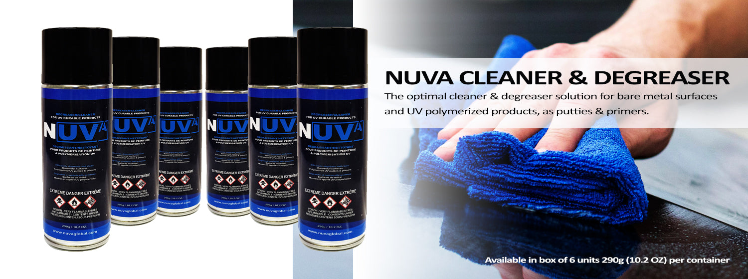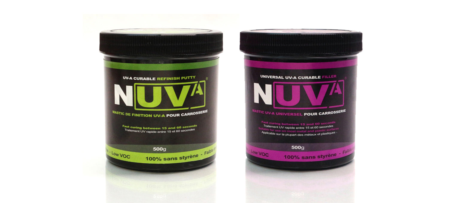 NUVA is a professional product line specially designed for automotive refinishing and globally distributed by SpectraPro. Developed and tested by experts for optimal quality results, the product line includes the universal UV-A curable filler and refinish putty.