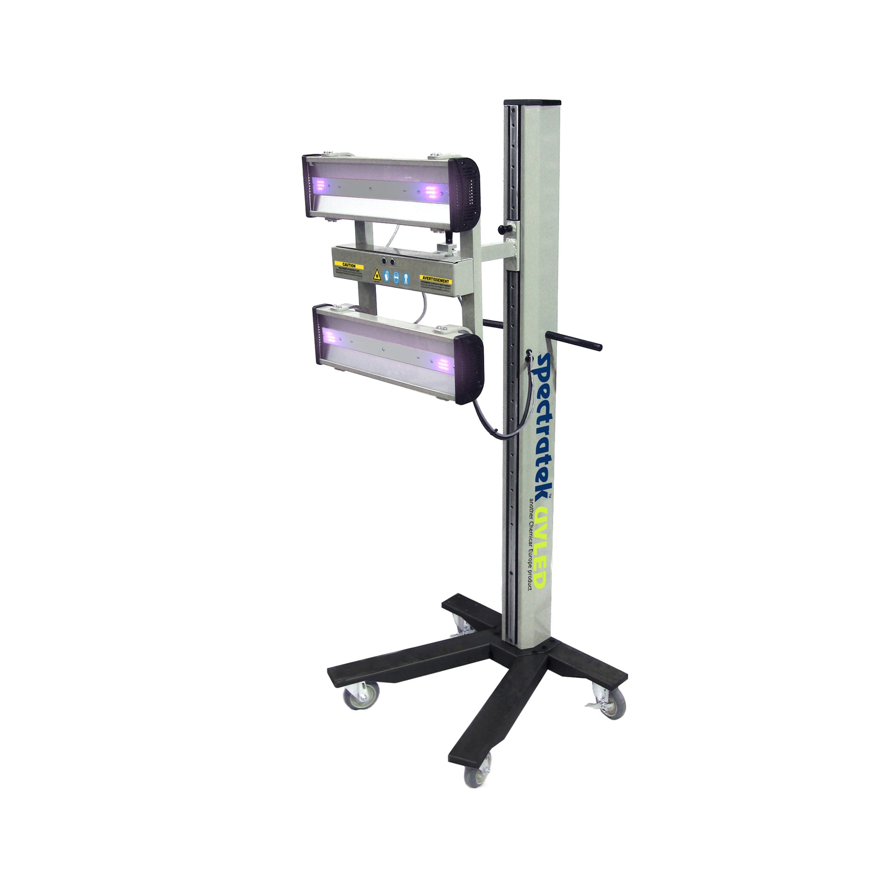 A powerful UV-A LED curing lamp with a single head on column. Designed and built in Canada to cure UV paint products on large surfaces.